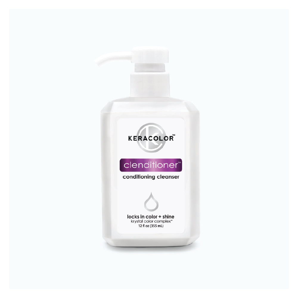 Keracolor Clenditioner is a conditioning cleanser that replaces your shampoo. All this time shampoo has been stripping the color, natural oils, and inherent beauty from our hair. Clenditioning your hair retains essential oils, and locks in color while gently whisking away dirt with a no-lather whisper.