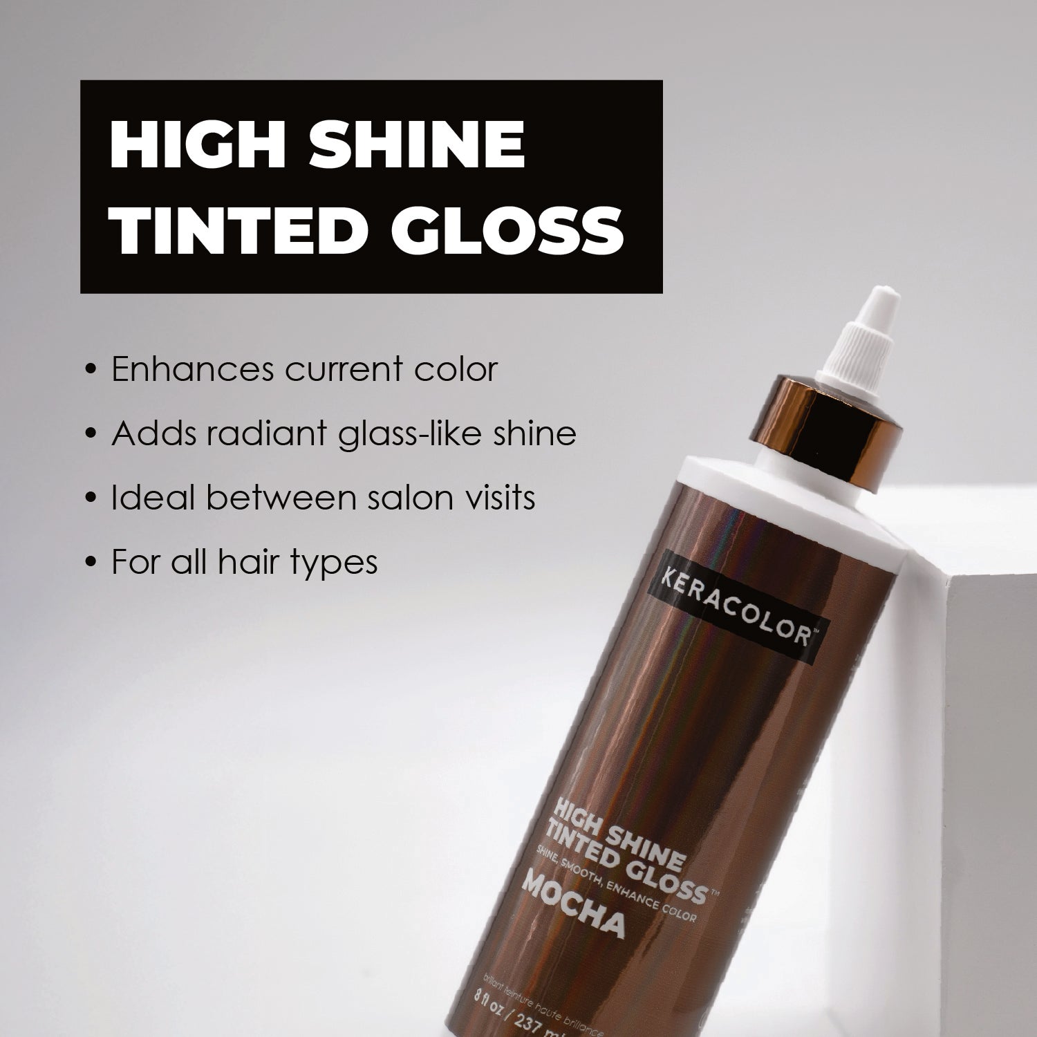 Transform dull, faded hair into a brilliant, glass-like masterpiece without leaving the shower. Keracolor High Shine Tinted Gloss is a one-step in-shower glaze that delivers a sheer boost of color and an intensely glossy finish, so your hair looks freshly styled long after your last salon visit.